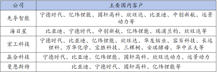 还有一点非常重要,国内动力电池市场规模虽大,但产业集中度较高。这就使得先导智能、海目星等公司的客户重合度非常高,宁德时代、亿纬锂能、国轩高科等大厂基本是他们共同的大客户。