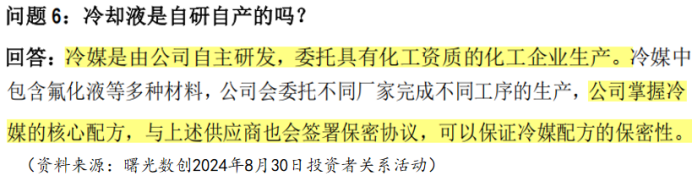 其实,曙光数创一直以来在研发上都快人一步,液冷方案所必需的冷却液都是公司自主研发并掌握核心配方的。