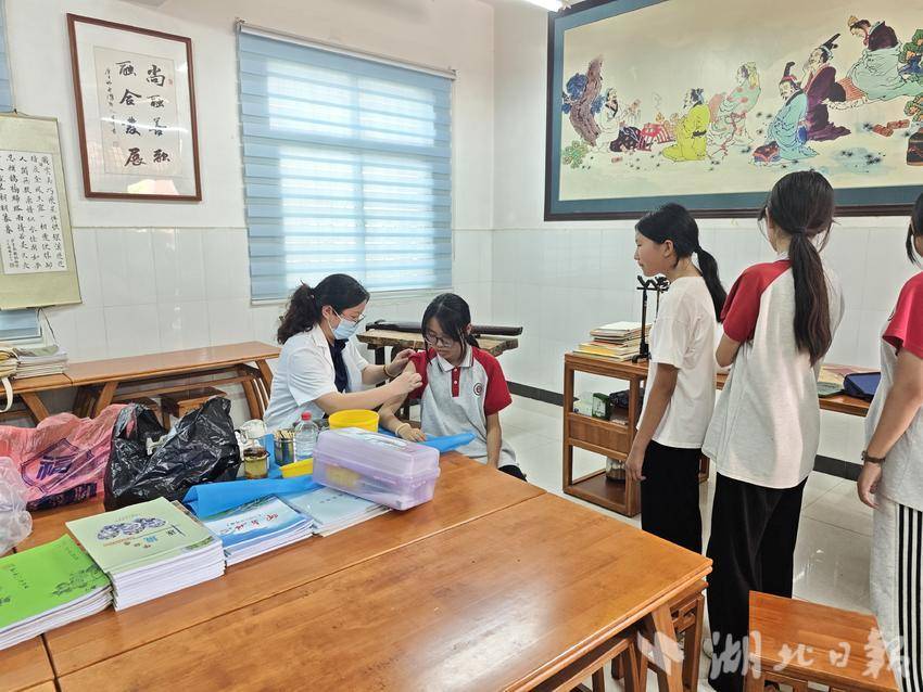 下午三点左右,在三官殿九年制学校鄂五书院内,符合接种条件的女生们在老师和医护人员的引导下,有序进行信息登记、健康问询和疫苗接种。现场流程清晰,分区明确,充分保障了接种工作的安全与高效。