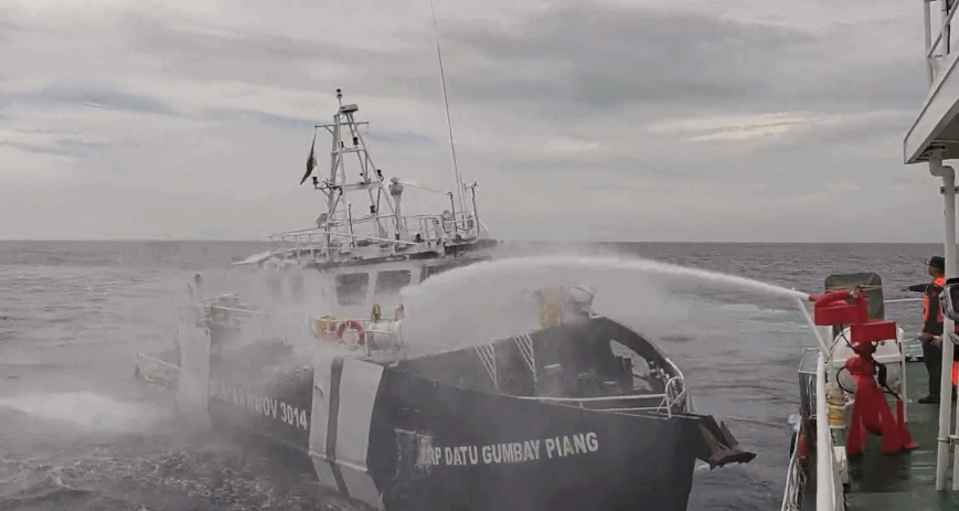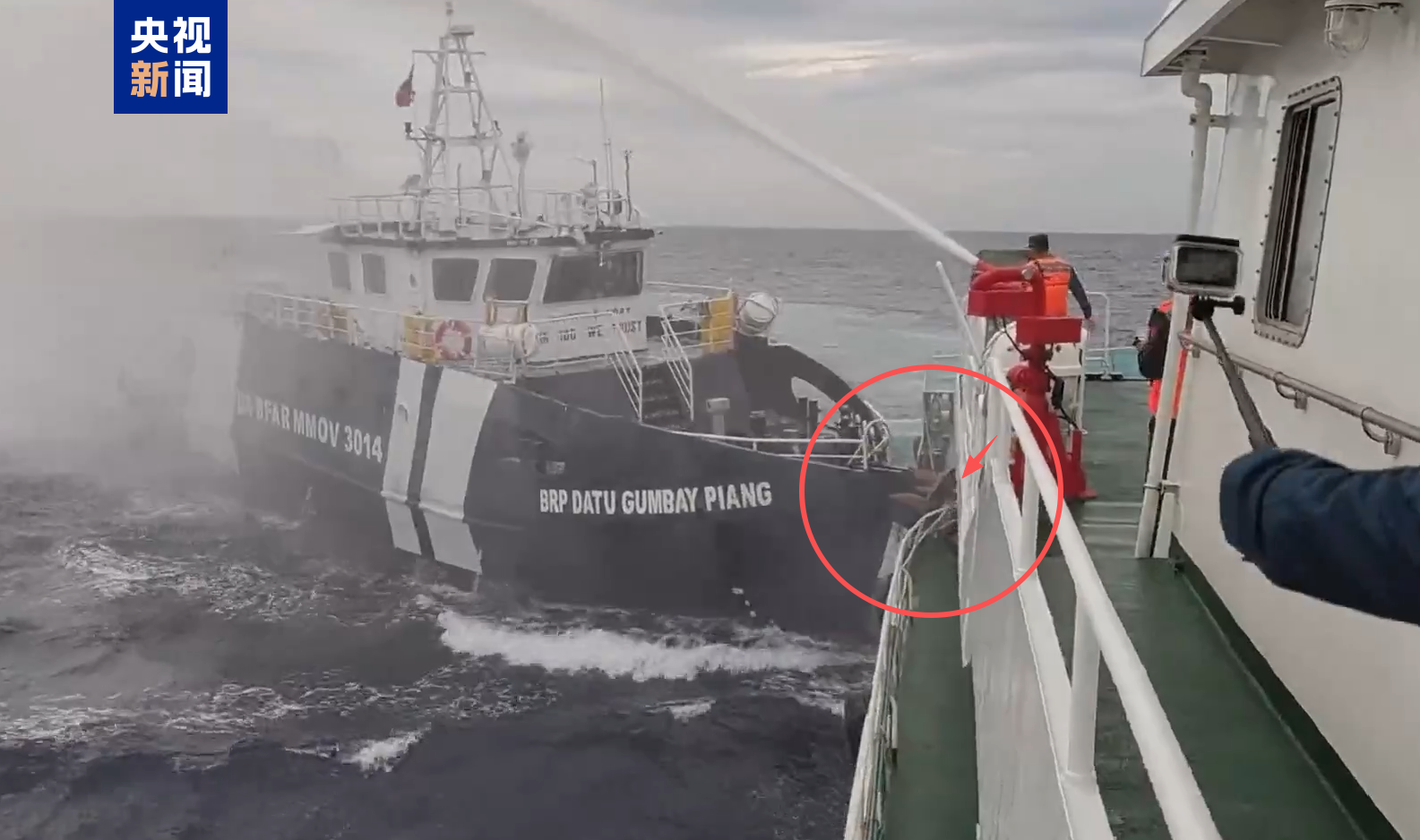 △中国海警依法对菲侵权船只管制现场画面