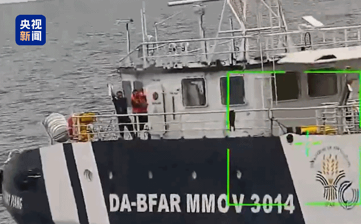 △中国海警公布视频显示,菲船人员举白旗。