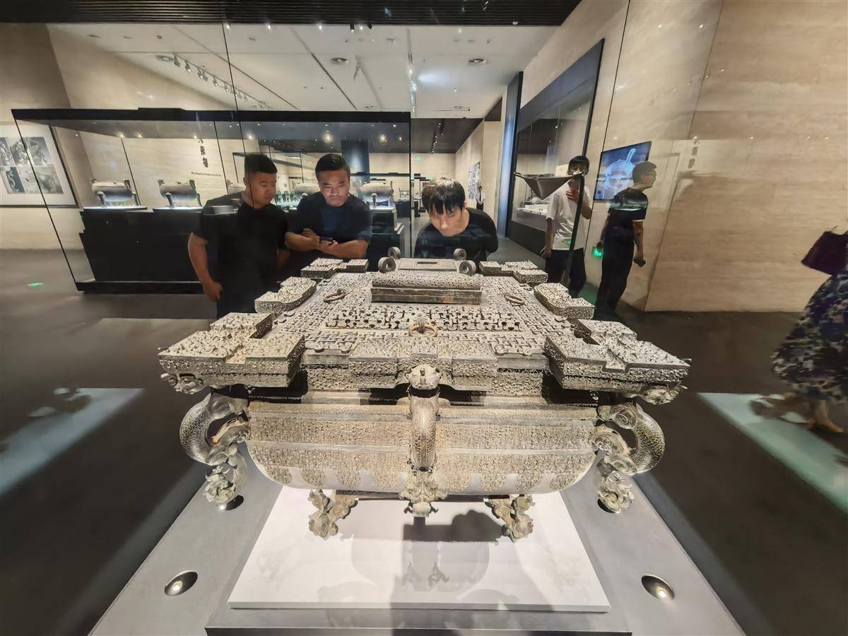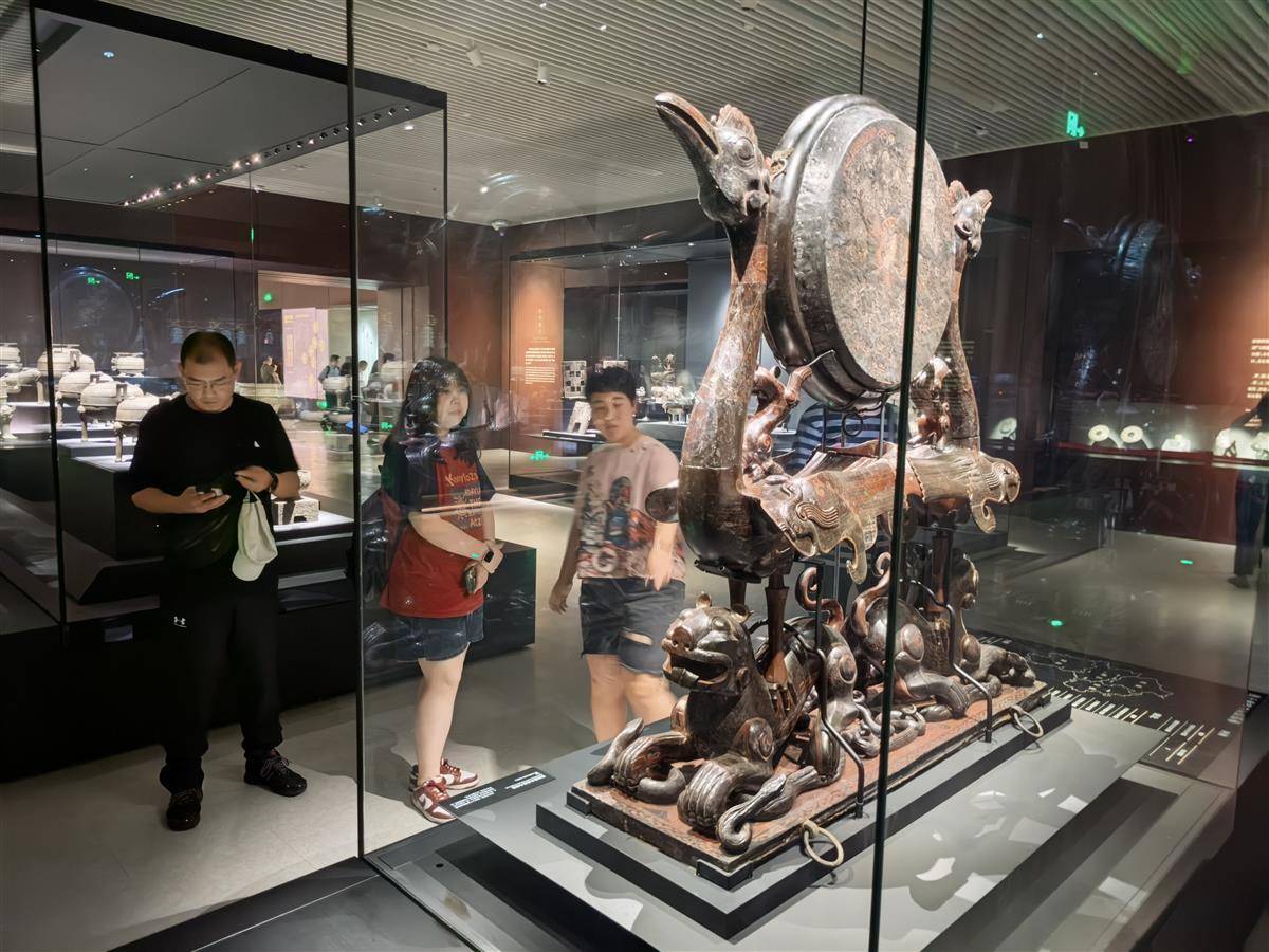自当日起,湖北省博物馆正式推出夜游模式,每月 17 日将延长开放时间,夜游时段从 17:00 持续至 20:30。傍晚时分,展厅内柔和的灯光缓缓亮起,照亮了一件件珍贵的文物。在曾侯乙编钟展厅,游客们驻足观赏,有的举起手机拍摄编钟在灯光下的精美纹饰,有的侧耳倾听工作人员讲解编钟背后的历史故事,偶尔还能听到游客之间轻声交流的赞叹声。夜游模式的开启,为广大游客提供了全新的文化体验机会。夜幕下,文物仿佛被赋予了新的生命力,游客们在轻松的氛围中领略历史文物的独特魅力,感受荆楚文化的深厚底蕴。(湖北日报全媒记者 刘曙松 摄)