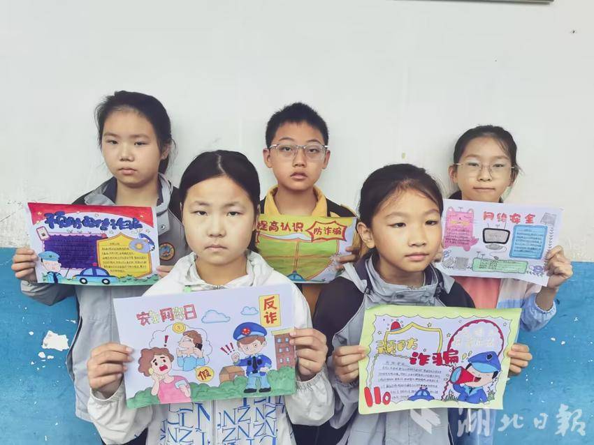 在作品展示环节,获奖学生手持自己的手抄报在校园内合影分享,这些色彩缤纷的作品不仅在教学楼走廊形成一道“反诈宣传长廊”,还通过班级群向家长们传递网络安全知识。五年级学生张欣怡的反诈主题手抄报,因将本地案例与卡通民警形象巧妙结合,获得师生一致好评,她说道:“画手抄报时,我把老师讲的‘反诈三招’都画进去了,现在我不仅自己懂,还能教爷爷奶奶识别骗局呢。”