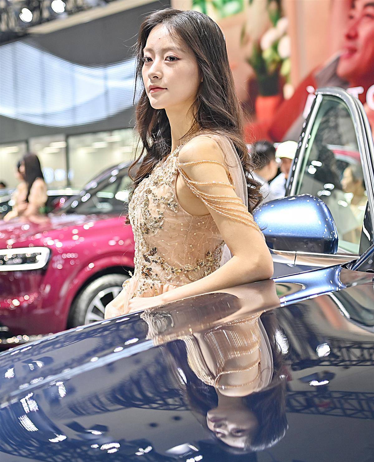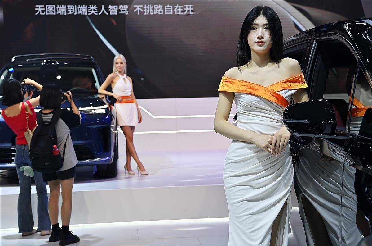 上,多品牌车企请来了车模,展会成了车模的聚会地,他们个个貌美如花,是本次车展另一道靓丽的风景。(湖北日报全媒记者 朱熙勇 摄)