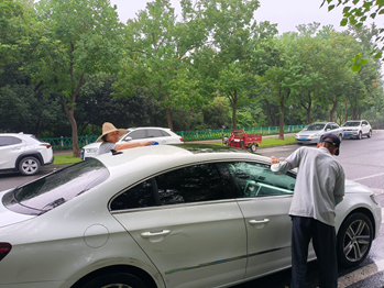 活动现场井然有序。磨刀服务摊位前,居民有序排队,专业师傅高效处理,让刀具快速恢复锋利;爱心义剪区域,理发师耐心修剪,看到自己经打理后清爽的发型,居民满是开心;洗车服务点旁,志愿者认真清洗车辆,现场一派忙碌欢快景象。这些细微服务贴近百姓生活,为上班族及行动不便的老年人带来切实便利。