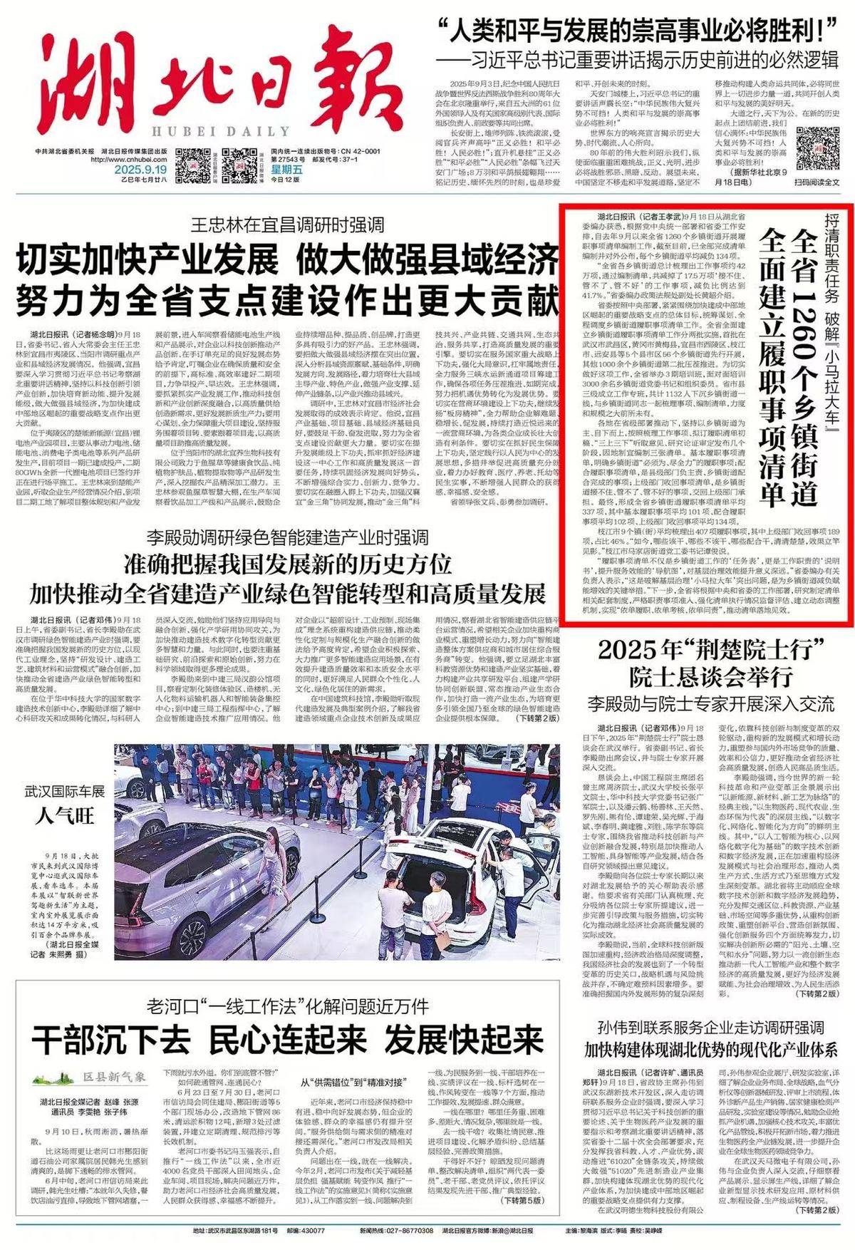 9月19日湖北日报1版。