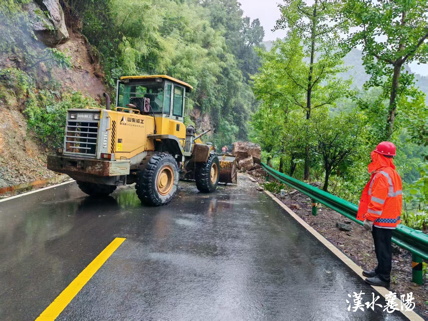 ▲8月10日,谷城县盛康镇凉水泉村附近山体滑坡道路抢修