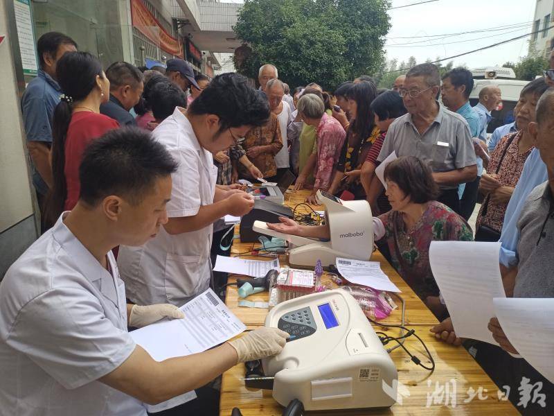 湖北日报客户端讯(通讯员徐功频 沈庭萱 刘志远)9月18日清晨,崇阳县青山镇蔡墩卫生所门前便排起了长队,一场面向村民的免费体检活动在此开展,吸引近百名群众前来参与。