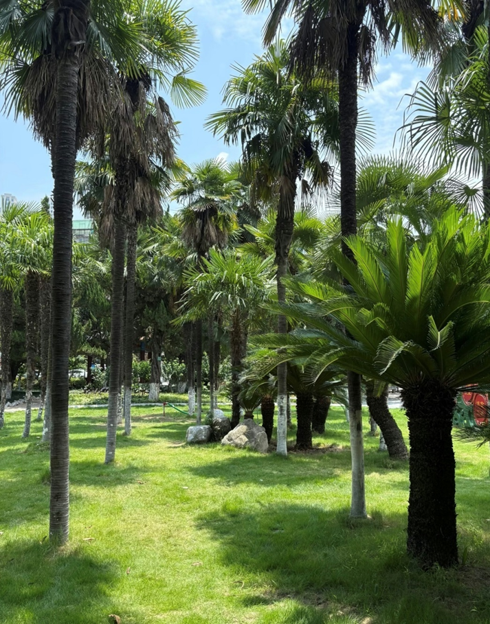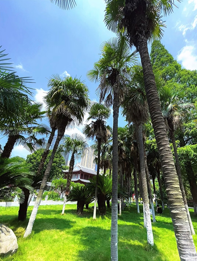 刚刚过去的8月,襄阳市人民公园里的棕榈树林“火了”! 高耸的树木在阳光下投出斑驳的光影,映衬着湛蓝的天空与洁白的云朵,仿佛把热带海岸搬进了城市中心。前来打卡拍照的外地青年游客王文直呼,“我说这是在海边都有人信”! 一座伫立于城市繁华之地的老旧公园,却将自然生态与人文服务相结合,不断提升精细化管理水平,推动城市绿化升级,在岁月流转中焕发新颜。
