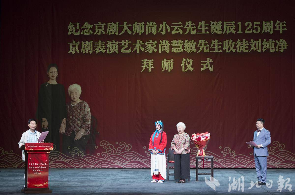 湖北日报讯(记者农新瑜、通讯员殷骏)戏韵声声里,艺术薪火传。9月21日下午,一场承载着京剧尚派艺术传承使命的拜师仪式在湖北省京剧院京韵大舞台举行。著名京剧表演艺术家、尚派传人尚慧敏先生,正式收湖北省京剧院二级演员刘纯净为徒。拜师仪式后,纪念京剧大师尚小云诞辰125周年专场演出、由刘纯净主演的经典京剧全本《玉堂春》在京韵大舞台精彩上演。