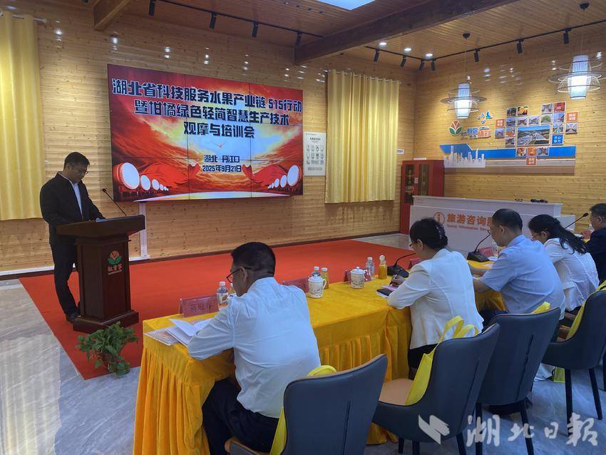 湖北日报客户端讯(通讯员 田正阳 肖丽 田杰)9月21日,湖北省柑橘绿色轻简智慧生产技术观摩与培训会在丹江口市均县镇丹江口红甘苹智慧农业科技有限公司召开。省农业农村厅科教处处长柯凤英,副市长孙志欣出席培训仪式并致欢迎辞。