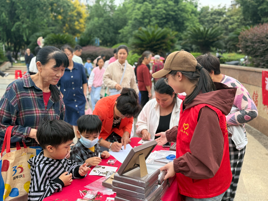 中药标本拼贴画体验区成为集市“创意打卡点”。志愿者提前备好晒干的金银花、薄荷、艾叶、陈皮等中药材,及画纸、胶水等工具。居民围坐一起发挥想象,将中药材拼贴成“健康长寿”“平安顺遂” 等图案。带孙子参与的刘婆婆,认真将薄荷叶片拼成“小树叶”形状,她表示:“以前只知道这些中药能治病,没想到还能做成这么好看的画,既动手又长见识,孙子也玩得特别开心。”