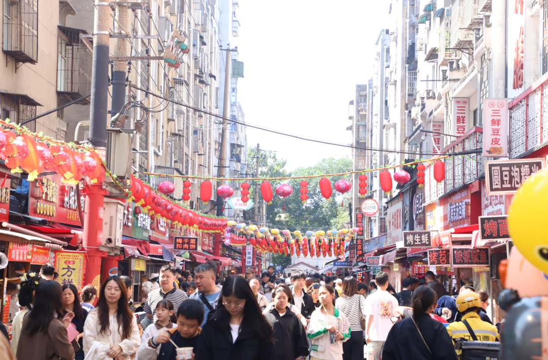 同日,位于沙市区的大赛巷美食街,则化身传统文化与美食体验的盛会——“迎双节·寻味大赛巷”主题活动热闹开场。非遗表演、互动游戏、沙市美食……不到400米的街上,游人如织,烟火气十足。