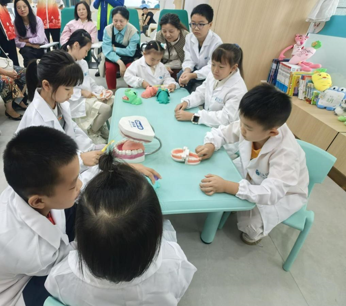 活动核心环节“爱牙知识小课堂”由“平头牙匠”丁字桥店胡医生主讲。胡医生借助逼真的牙齿模型和大幅刷牙海报,深入浅出讲解早期矫治的重要性及科学刷牙方法。学生们跟着做“刷牙手势操”,踊跃参与知识问答竞赛,在欢乐互动中牢记爱牙知识。
