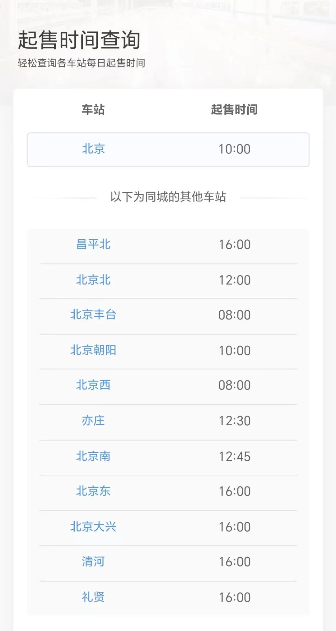 输入需要查询的车站