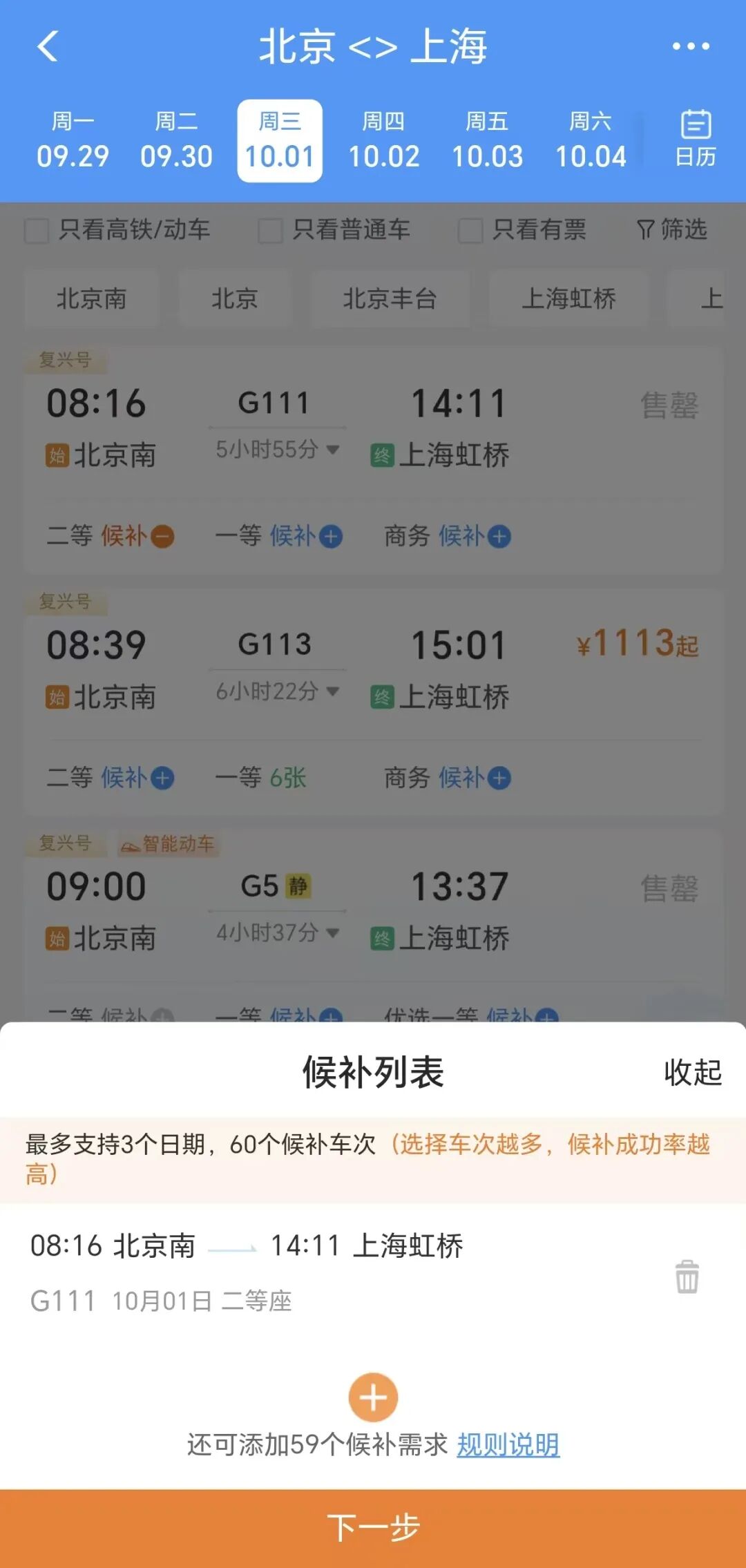 即可进行候补购票
