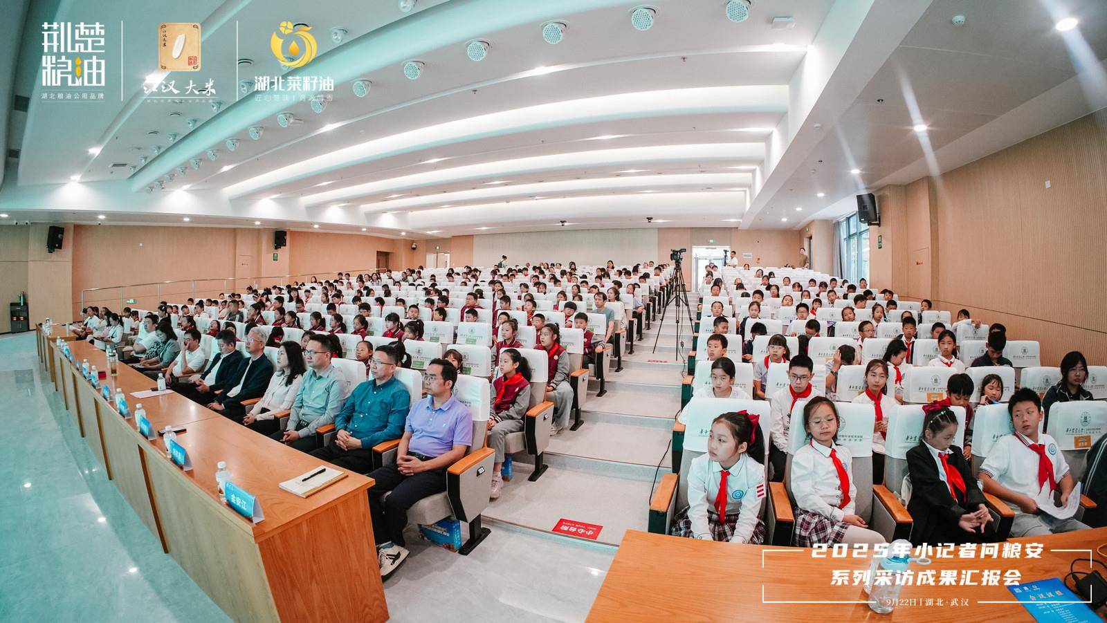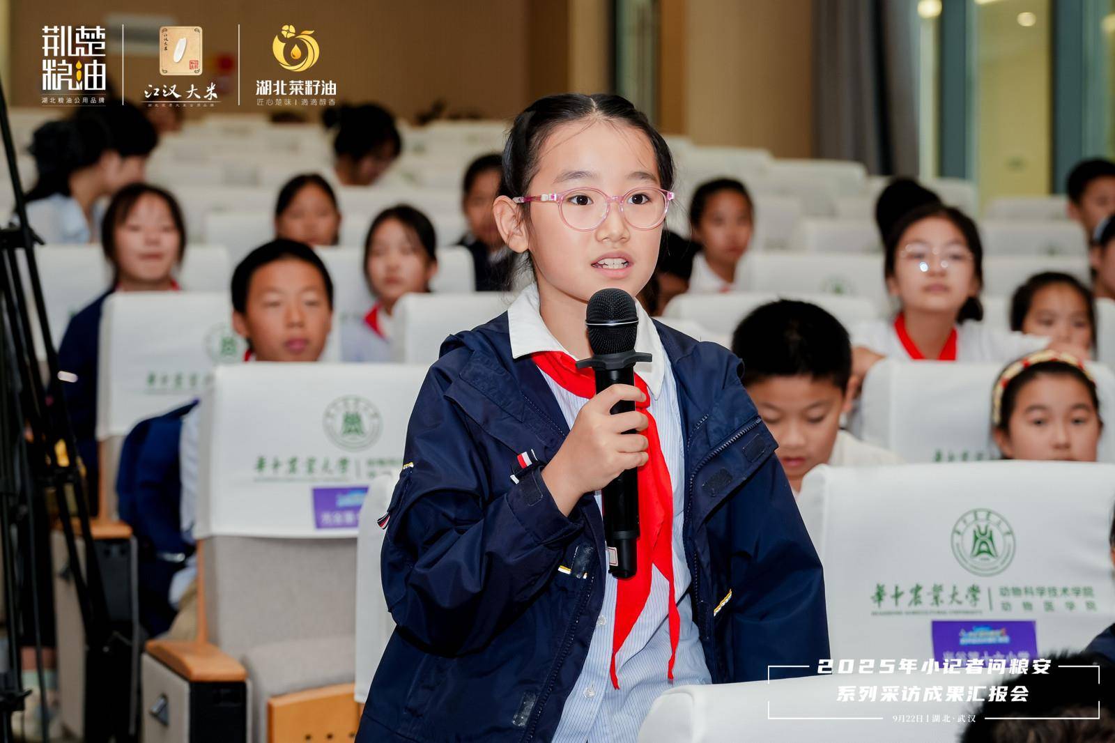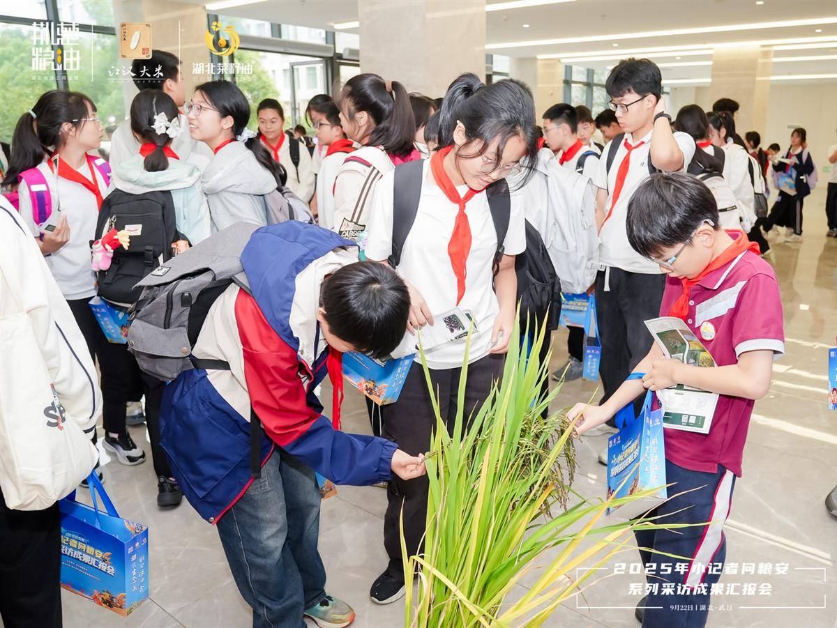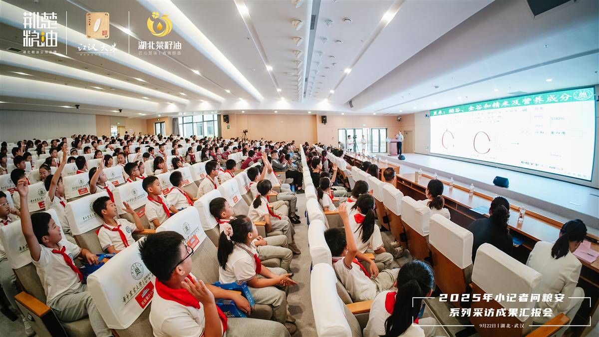 9月22日,在“中国农民丰收节”和世界粮食日即将到来之际,2025年“小记者问粮安”系列采访活动成果汇报会,在狮子山侧的华中农业大学举行。18位获奖的小记者,上台分享他们的研学心得,以童言童语诠释粮食科技赋能粮食产业的内涵。来自武汉市6所中小学的近300名师生到场聆听。