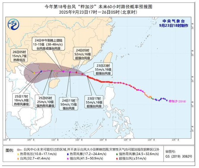 今年第18号台风“桦加沙”(超强台风级)的中心今天下午5时位于广东省阳江市东偏南方向约510公里的南海北部海面上,即北纬20.6度、东经116.7度,中心附近最大风力有16级(55米/秒),中心最低气压为930百帕,七级风圈半径320-380公里,十级风圈半径150公里,十二级风圈半径90公里。