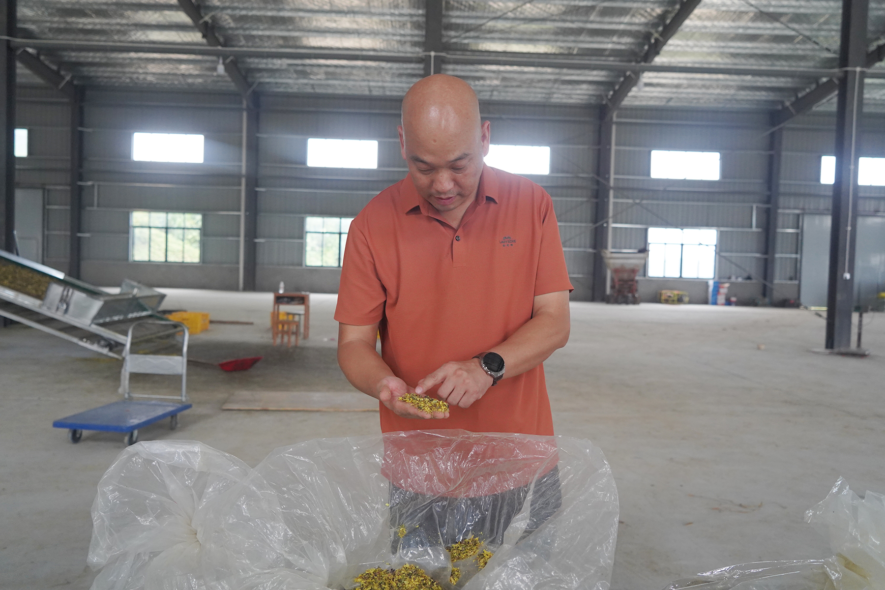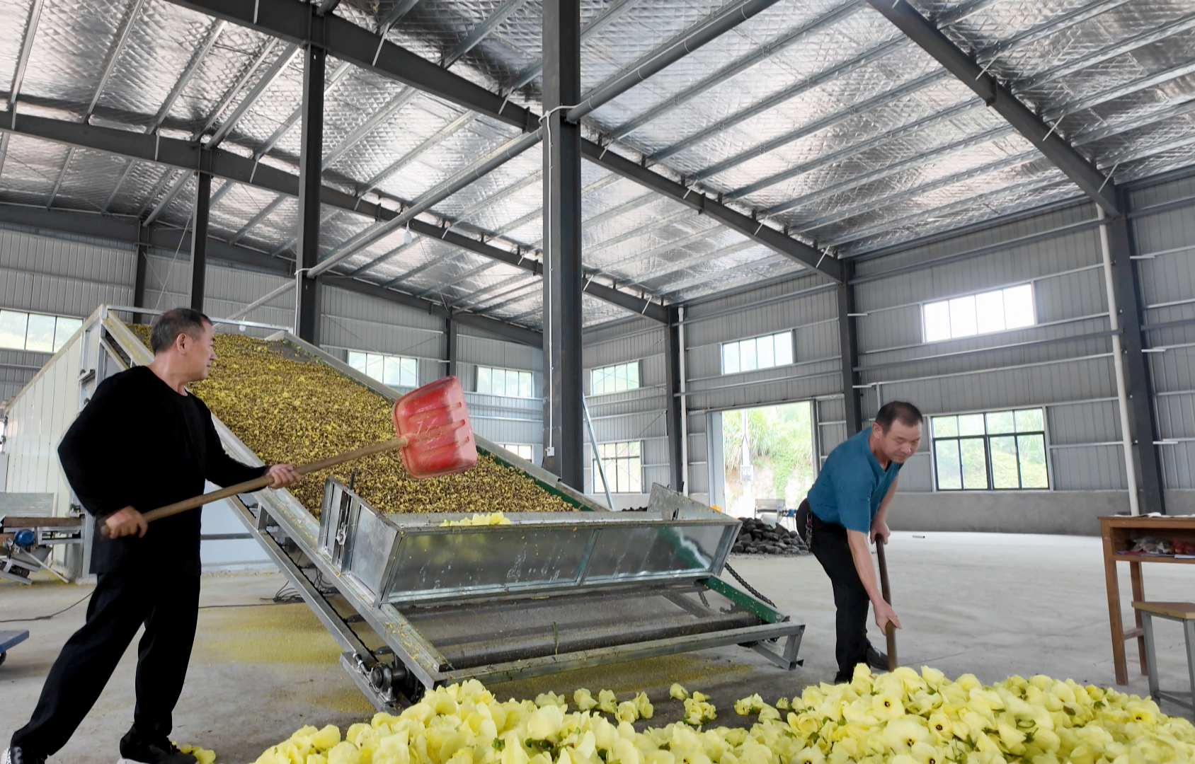 任继良的归乡路走得格外顺畅:2022年到河田村试种,黄蜀葵长势喜人;2023年,厂房用地手续在政府协调下顺利办结,厂房正式投建,正式成立崇阳县鸿森农业专业合作社;2024年,第一条日处理2万斤黄蜀葵的生产线投产,基地旁的道路也借着全域国土整治项目修通。“有困难找政府,他们总是第一时间协调解决。”政府的高效服务,让他能安心把更多精力放在产业落地与带农增收上。