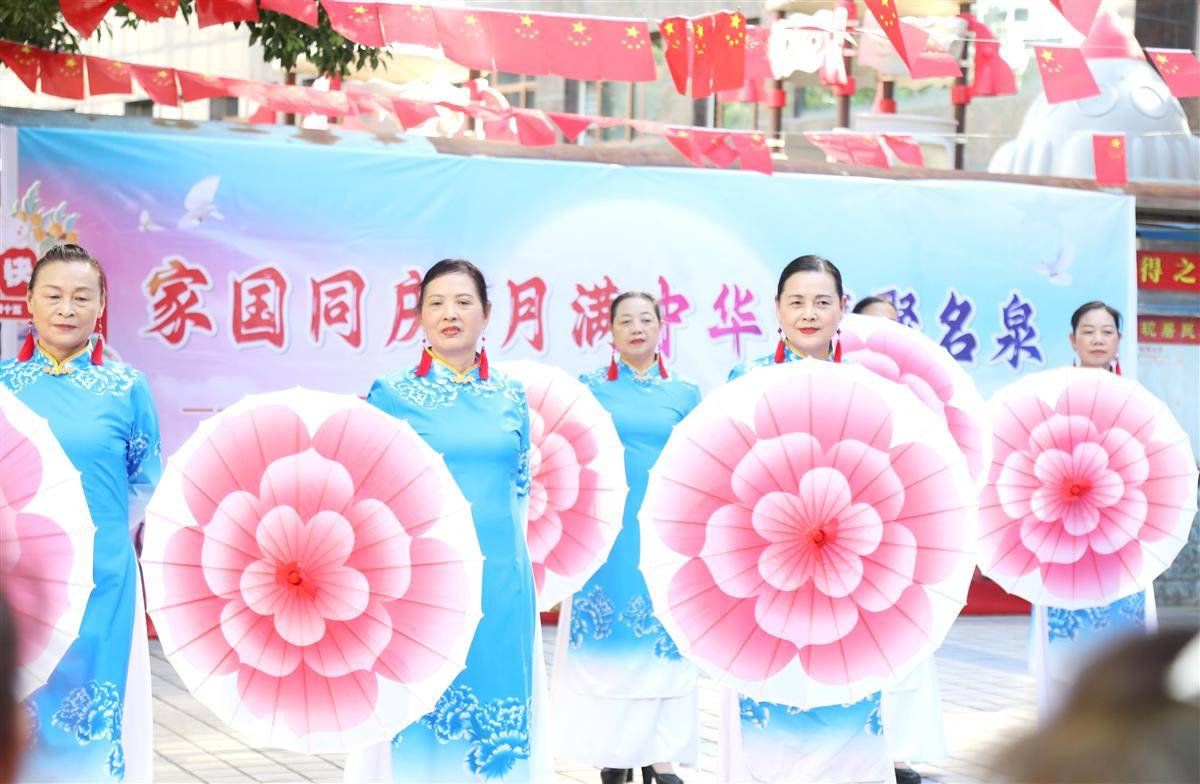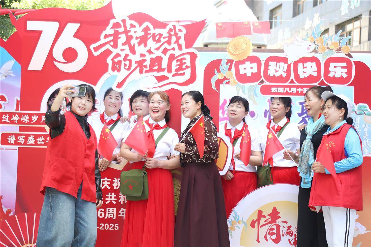 国庆、中秋双节将至,9月24日,荆门市掇刀区掇刀石街道名泉社区以“家国同庆”为核心,融合传统节日文化与爱国主义教育,组织居民欢聚一堂,通过节目表演、沉浸式互动体验等方式,表达对伟大祖国的热爱和美好祝福,共抒家国情怀。(视界网 张彩云 摄)