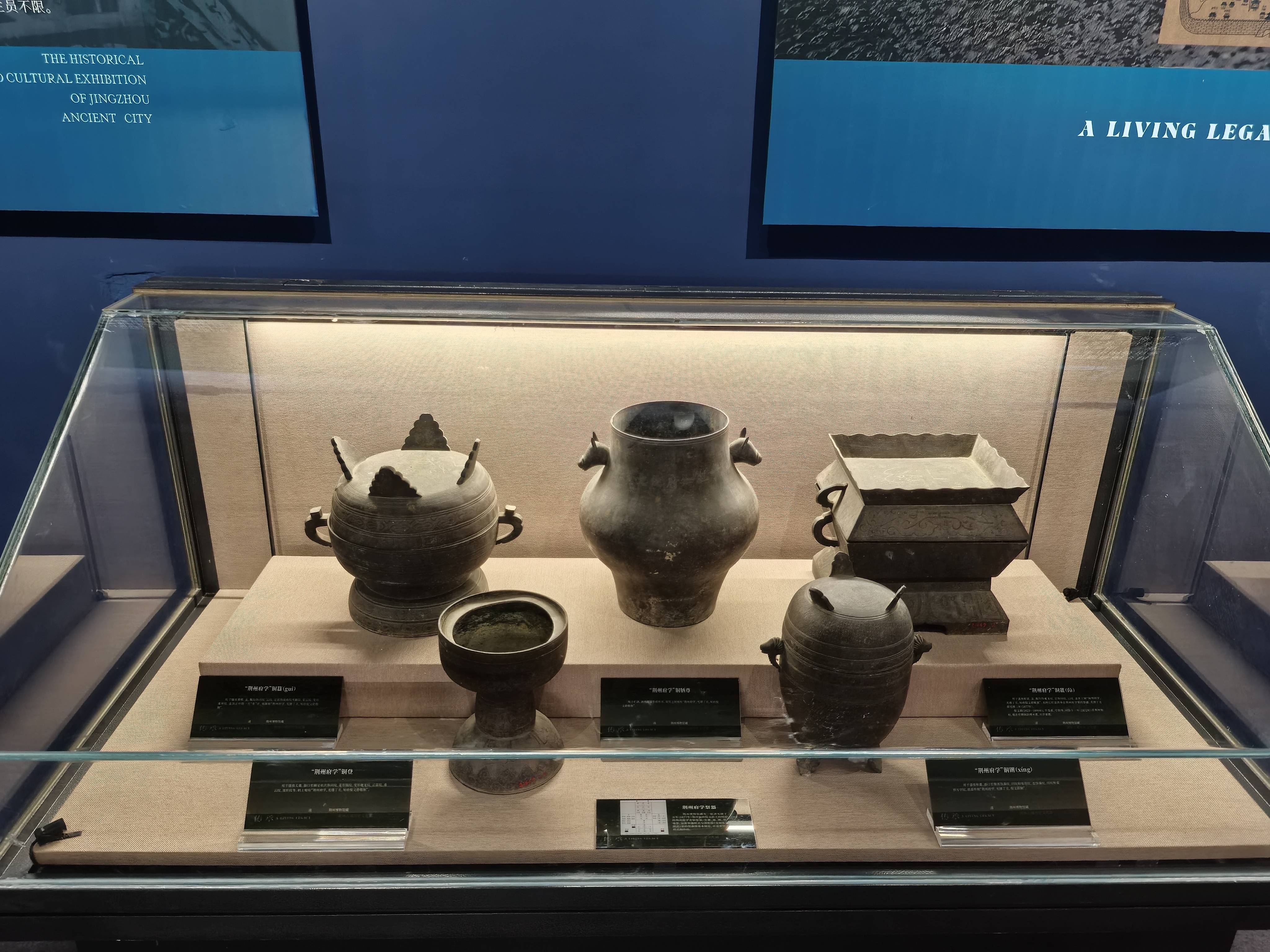 第三单元“人文鼎盛”,从“兴贤育才”“宰相之杰”“明藩与地方社会”“道观寺庙”等微观层面介绍古城的人文荟萃及儒释道在古城多元共存的特征。其中“兴贤育才”是本单元的重点,首次展出清代荆州府学祭孔铜礼器一组、荆南书院奎文阁石刻拓片,来展现古城内学校、书院之盛,现古城内学校也多是沿用其旧址,可见古城文脉赓续至今。