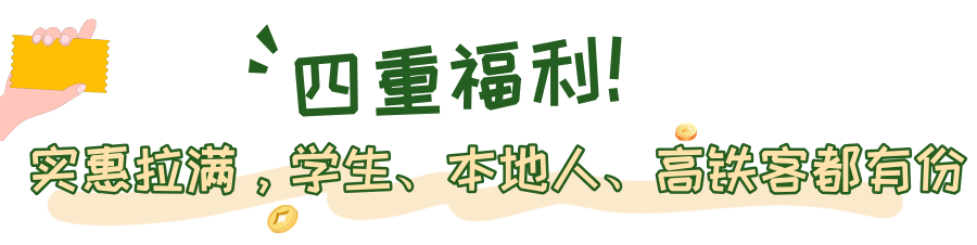 “乘高铁游咸宁”优惠:对持有抵达咸宁北站、赤壁北站一周内高铁票的游客,三国赤壁古战场等多家景区提供免首道门票或门票五折优惠。