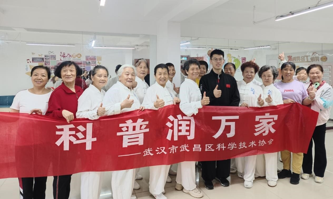 活动现场,武汉体育学院健身气功代表队志愿者老师张宇卓带领20余位居民练习八段锦。张宇卓先详细介绍八段锦的历史渊源与养生功效:“它对增强体质、调节情绪等效果显著,尤其适合老年人,不受场地限制且简单易学。”随后,他站在队伍前方逐式演示,双手起落间动作舒展柔和,还不时走到居民身边纠正姿势,“右手上撑时腰背要挺直,左手下按需用巧劲,感受身体的拉伸感……”居民们跟着口令抬手、转身,起初略显生涩的动作,在反复练习后逐渐变得整齐划一。