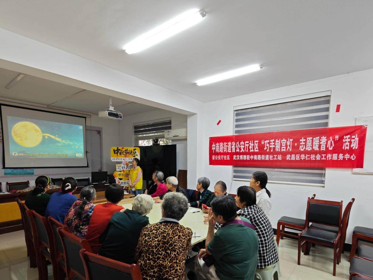 湖北日报讯(通讯员潘娜、杨柳)9月23日,武汉市武昌区中南路街道省公安厅社区联合街道计生协、武汉博雅驻中南路街道社工站、武昌区华仁社会工作服务中心共同开展“巧手制宫灯,志愿暖耆心”活动,通过手工制宫灯、节气文化宣讲、上门慰问等形式,丰富社区老年人的精神文化生活,为辖区32名高龄老人和特扶人员送去节日的温暖与关怀。