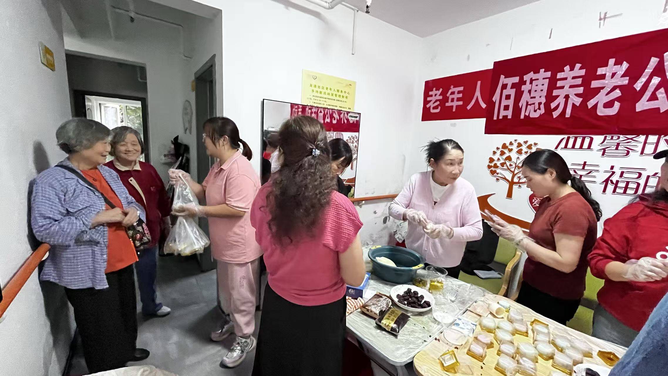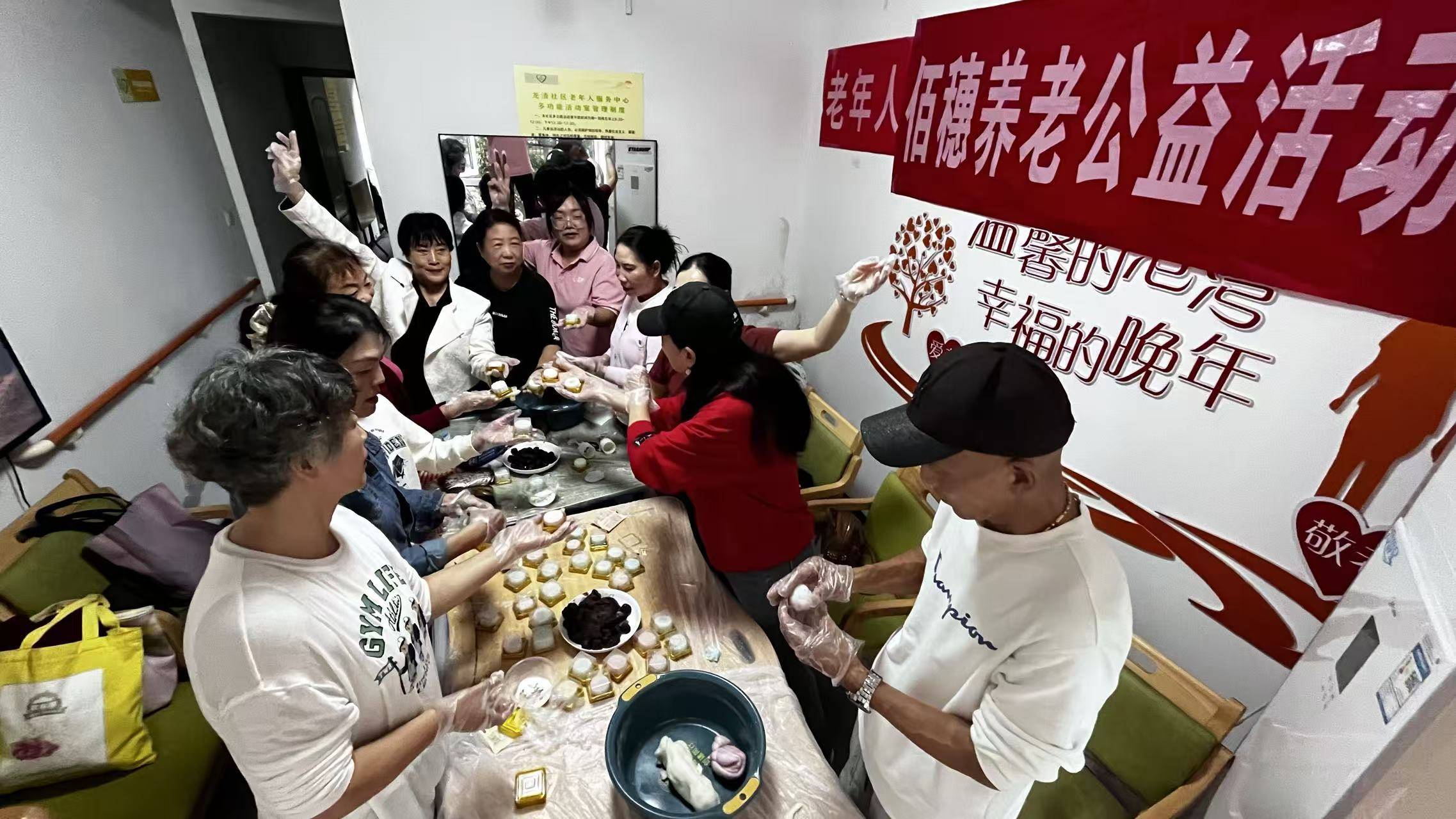 活动前,社区工作人员和佰穗养老服务机构已将面粉、豆沙、莲蓉等食材,及模具、手套、托盘等材料准备齐全。