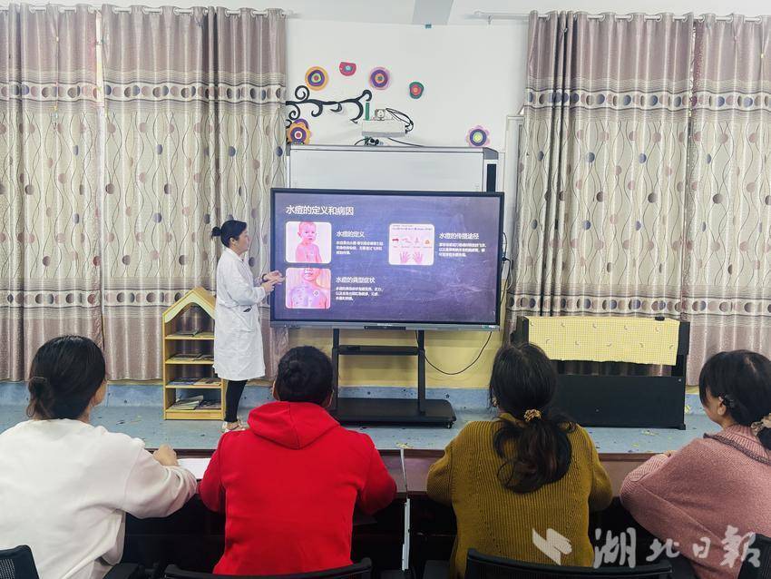 湖北日报客户端讯(通讯员 胡亦冉)为科学精准做好幼儿园常见传染病防控工作,提升保育老师的应急处置能力,9月26日上午,浪河镇中心幼儿园特别邀请浪河镇卫生院王静医生,为全体保育老师开展了一场针对性极强的传染病防控专题培训。