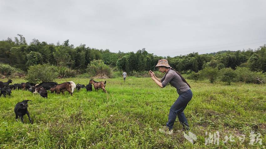 2022年,鞠清林从大学毕业后,曾在一家公司从事设计工作。2023年,为了爱情,这个重庆姑娘远嫁到千里之外的崇阳县西冲村。年轻人在山里怎么谋生?站在西冲村的山坡前,鞠清林陷入迷茫。转机来自她的公公,这位与山打了一辈子交道的老农,恳切地劝说道:“山里别的不多,就是草好。我原来也放羊,辛苦但踏实。”这句“踏实”,打动了正在寻找生活方向的鞠清林。于是她和丈夫拿出积蓄,引进了上百头山羊。