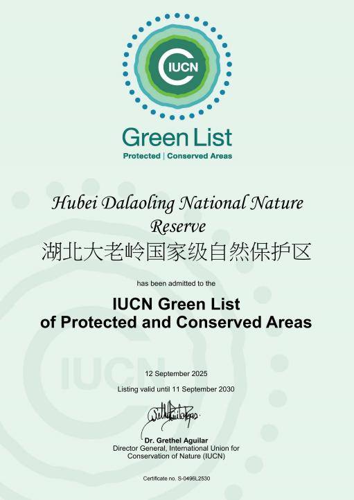 湖北日报讯(记者万雷萌、通讯员谭艳)9月23日,世界自然保护联盟(IUCN)致信,祝贺湖北大老岭国家自然保护区被列入世界自然保护联盟绿色名录,并颁发证书。这标志着大老岭保护区在生态保护、管理效率及可持续发展领域的成效获国际权威认可,跻身全球优秀自然保护地行列。