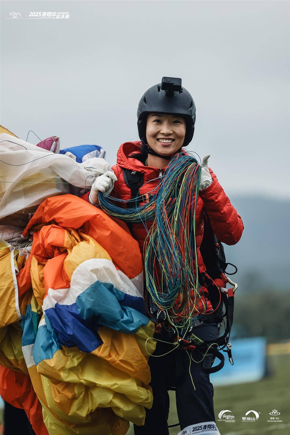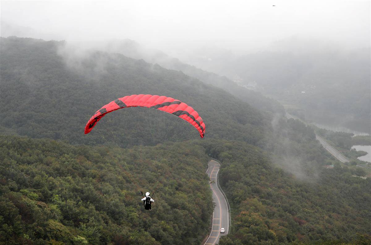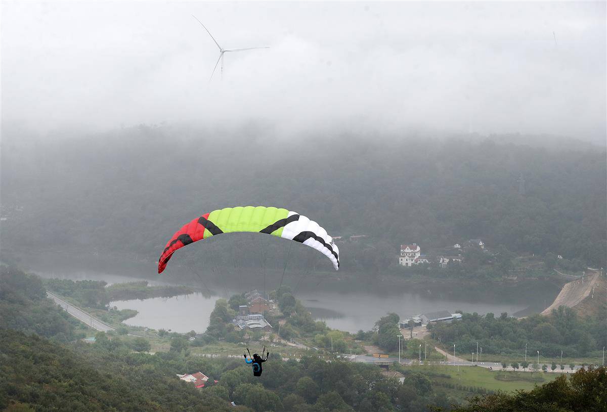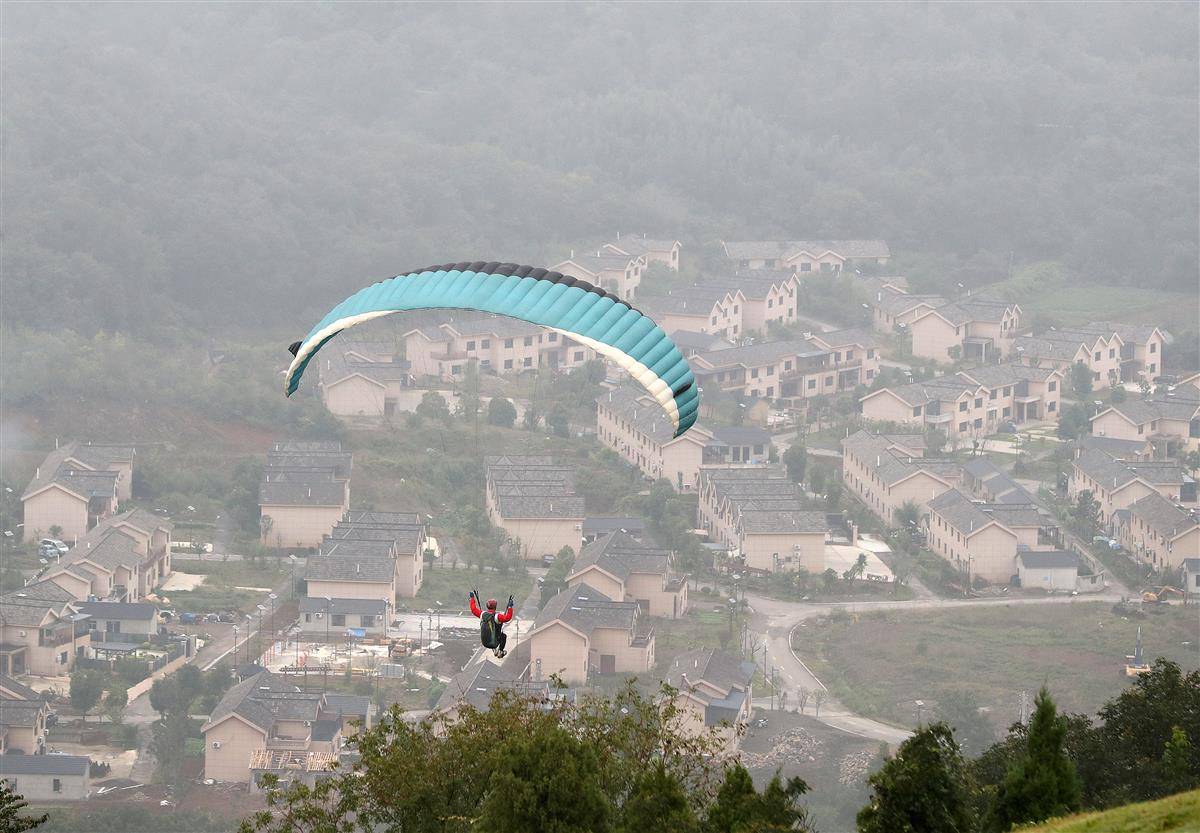 参赛选手从山顶跃下,俯瞰东宝。
