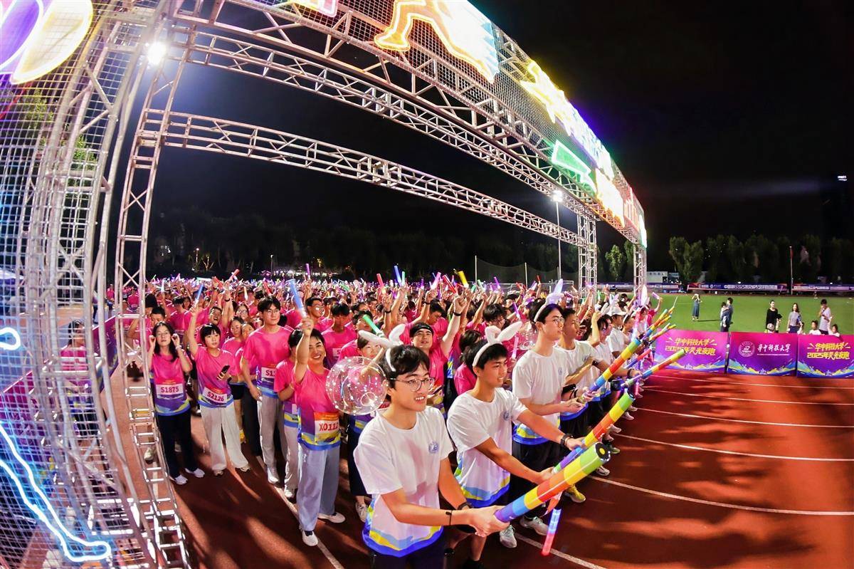 9月26日晚,2025华中科技大学荧光夜跑活动正式开跑,3000余名师生在“森林大学”的夜色里开启别样运动之旅。现场荧光棒闪烁,奔跑的身影穿梭于林间路径,与校园夜景相映成趣;脸部彩绘区前排起长队,创意图案为夜跑增添个性色彩;校园乐队登台演奏,动感节奏与师生的脚步声、欢呼声交织。这场集运动、趣味与音乐于一体的活动,不仅让师生感受了喻园夜色的独特魅力,更以鲜活的方式展现了校园的青春活力,为初秋的校园留下了一段热闹难忘的记忆。(湖北日报全媒体记者 何宇欣 实习生 何抒澄 通讯员 张欣雨 蔡凯悦 摄)