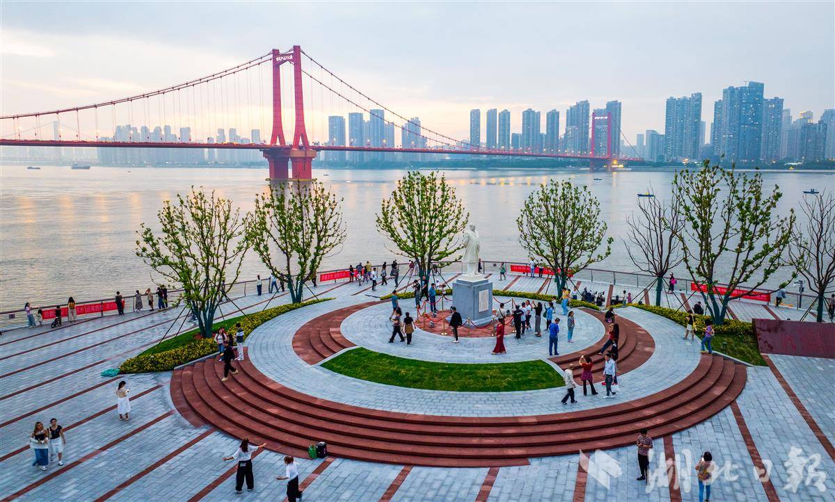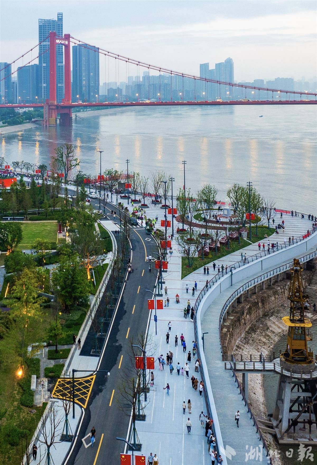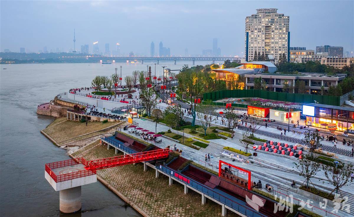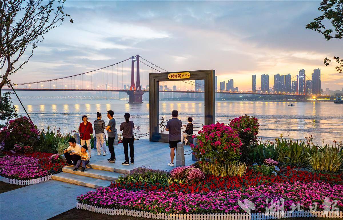 9月27日晚,市民在新建成的武昌湾1956公园休闲娱乐。武昌湾1956公园位于武汉长江大桥和鹦鹉洲长江大桥之间,是武汉百里长江生态廊道的“最后一公里”。该江滩公园于9月28日试运行,10月1日正式对外开放。届时,这里将举行落日音乐会、钢琴演奏等活动,带大家浪漫过节。(湖北日报全媒记者 薛婷 摄)