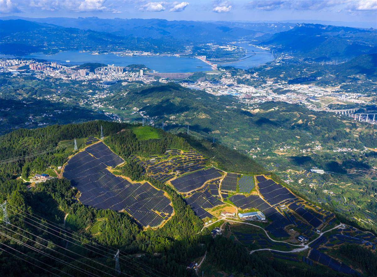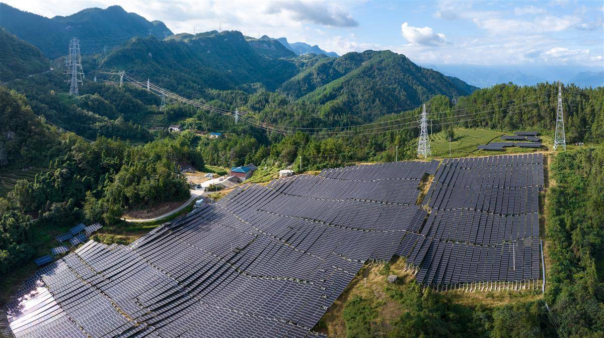 9月24日,在秭归县茅坪镇四溪村拍摄的光伏电站及外输线路。秭归县沿高峡山脊整齐铺展的光伏板,与峡江生态屏障和多姿多彩村庄交相辉映,构成三峡库区一幅亮丽的秋日生态新图景。近年来,该县充分利用撂荒地、低产茶园、村民屋顶等资源,采取集中式和分布式建设光伏电站,让日照资源变成产业资源,推进能源清洁低碳转型,助力乡村振兴。据该县发展和改革局统计,截至目前,光伏总装机已超过15万千瓦。(视界网 王罡 雷勇 摄)