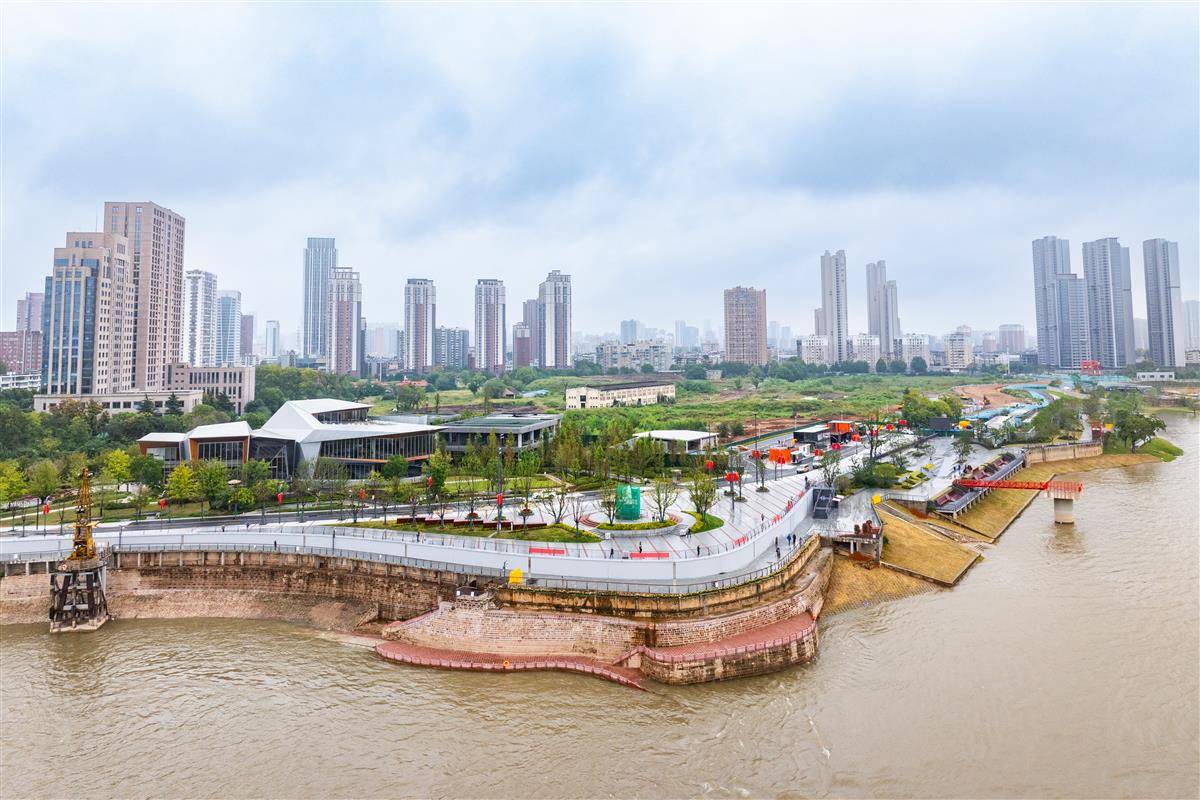 9月28日,“武昌湾”江滩开放试运营,宽阔的观江平台和极具特色的红色栈道、景观相框、历史塔吊及景观绿化将成为市民游客娱乐休闲的好去处。据介绍,作为百里长江生态廊道重点项目,工程对原武船厂专防堤段防洪墙原址重建,打通碧道断点,串联沿江岸线,重建1046米防洪墙,新增绿化3.1万㎡,贯通武汉百里长江生态廊道的“最后一公里”,连接武昌古城与滨江商务区,提升防洪能力与城市品质。(湖北日报全媒记者 倪娜 摄)