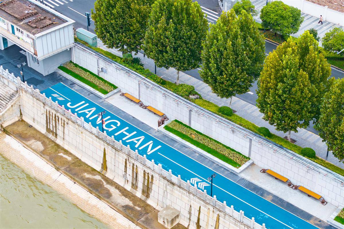 9月25日,空中航拍已经建设完成的江汉碧道。