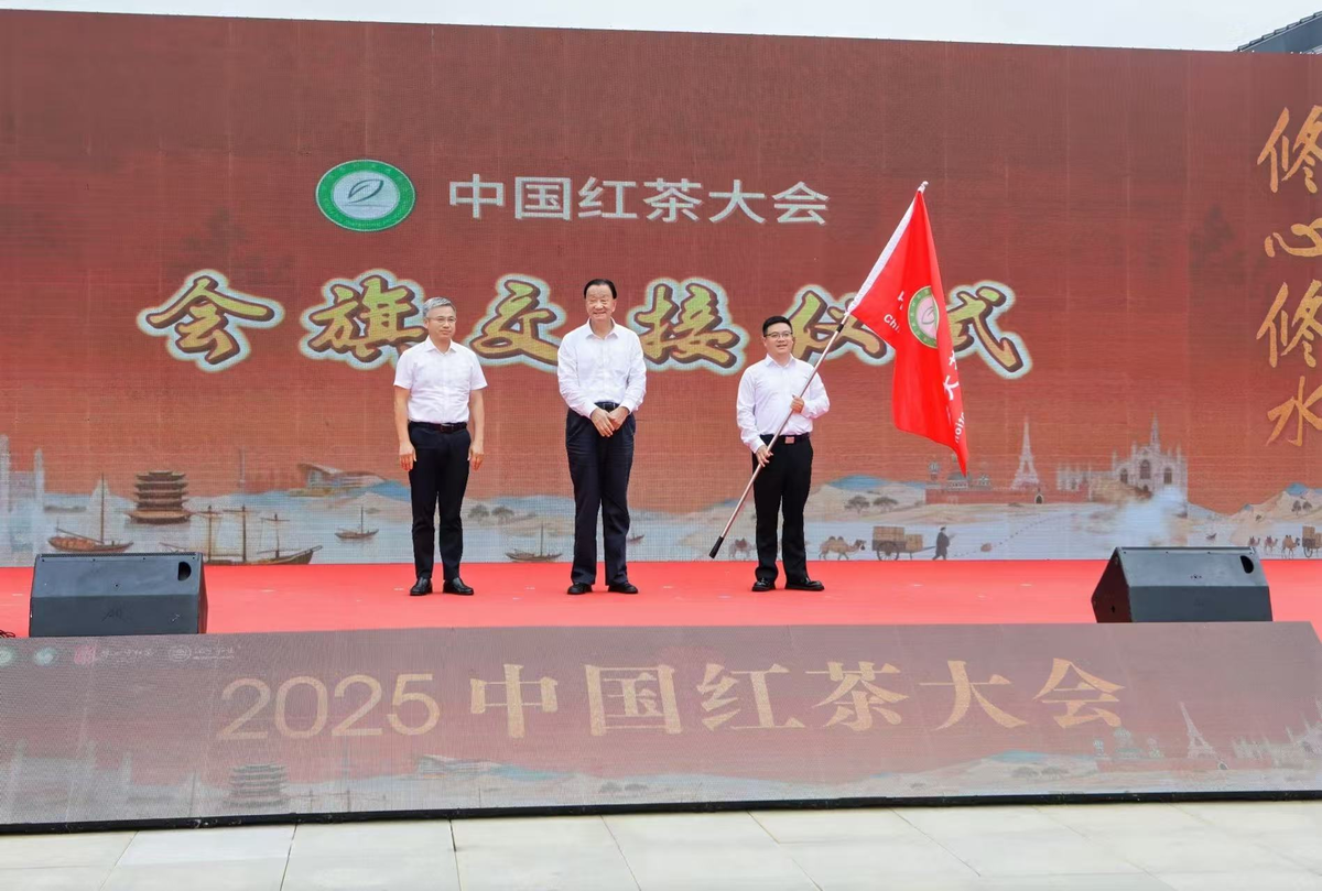 湖北日报农村版讯(通讯员谭小兵、叶剑锋 记者万可庆)“开门待世界,一杯利川红。”日前在江西修水举办的2025中国红茶大会上,利川市委书记熊翔与中国茶叶流通协会会长、全国茶叶标准化技术委员会主任委员王庆及修水县委书记郑庆华进行会旗交接仪式,2026中国红茶大会举办地正式落地利川。