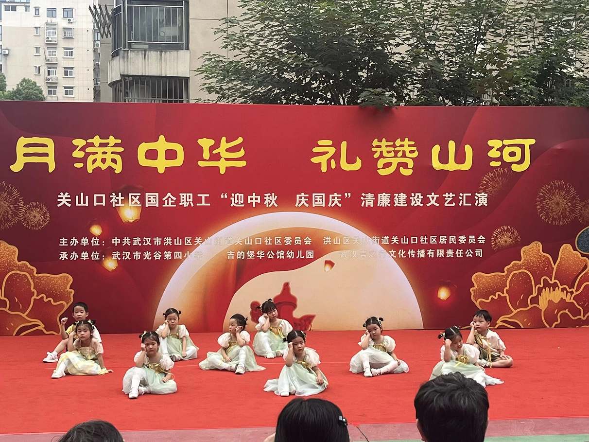 湖北日报讯(通讯员马庆希)9月26日,武汉市洪山区关山街道关山口社区在社区广场举办《月满中华 礼赞山河》“迎中秋庆国庆”文艺汇演活动,百余位居民到场共赏,现场掌声与欢笑不断。