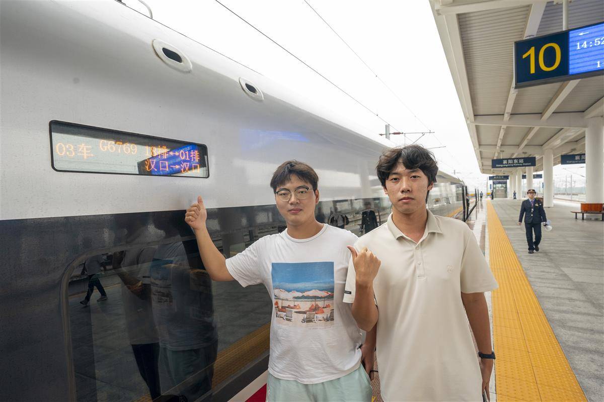 铁路迷小杨、小鄢在拍摄襄阳东站站台