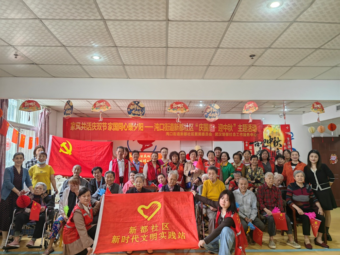 湖北日报讯(通讯员李月、张东华)9月25日,在国庆、中秋双节来临之际,武汉经开区沌口街道新都社区新时代文明实践站在颐福养老院举办 “庆国庆 迎中秋”主题慰问活动,40余名养老院入住老人与30余名社区文艺志愿者齐聚一堂,共庆佳节。