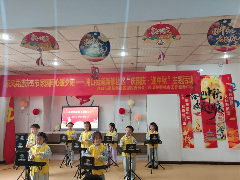 文艺表演现场欢声笑语不断。社区文艺志愿团队带来《十五的月亮》《但愿人长久》等经典曲目,韵味悠长。乐之园幼儿园小朋友们演奏的小钟琴《数鸭子》清脆悦耳,舞蹈《梦想家》天真烂漫,让老人们喜笑颜开。带队的宋老师表示,这不仅是演出,更是一堂生动的敬老课,看到老人开心,便觉意义非凡。
