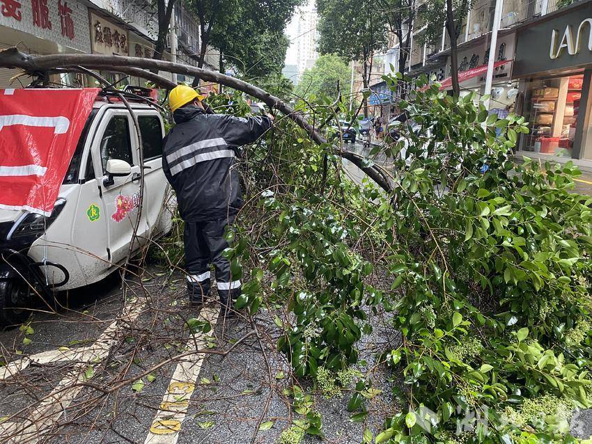 狂风裹挟着秋雨,吹落了路边的大树枝,横亘路面阻碍交通。社区工作人员迅速联动园林局,园林工人身着反光雨衣、头戴安全帽,第一时间奔赴现场。他们熟练地修剪、搬运沉重的树枝,在湿滑的路面上全力作业,很快便清除了路障,恢复道路畅通,社区工作人员与园林工人以高效的协作保障了居民的出行安全。