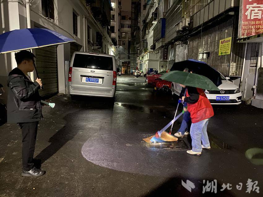夜幕低垂,泰山庙辖区的街头巷尾,几名社区工作人员撑着雨伞,手持工具,对低洼路段、地下商铺、道路井盖、积水小区等逐一排查。雨水打湿了他们的衣摆,他们却丝毫未曾懈怠,仔细检查每一处井盖的排水情况,及时清理堵塞的树叶、垃圾,清扫每一处积水,确保无死角、无遗漏,用严谨的态度、细致的服务为居民营造出安全整洁的生活环境。