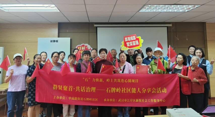 湖北日报讯(通讯员盛蓓)9月26日,国庆佳节将至,武汉市武昌区中南路街道石牌岭社区联合武汉博雅驻中南路街道社工站、武汉市江岸区新悦社会工作服务中心,开展“群贤聚首・共话治理”“社区能人”分享会主题活动。活动以党建为引领,汇聚社区智慧,激发居民参与热情,营造邻里互助、文明祥和的社区氛围。