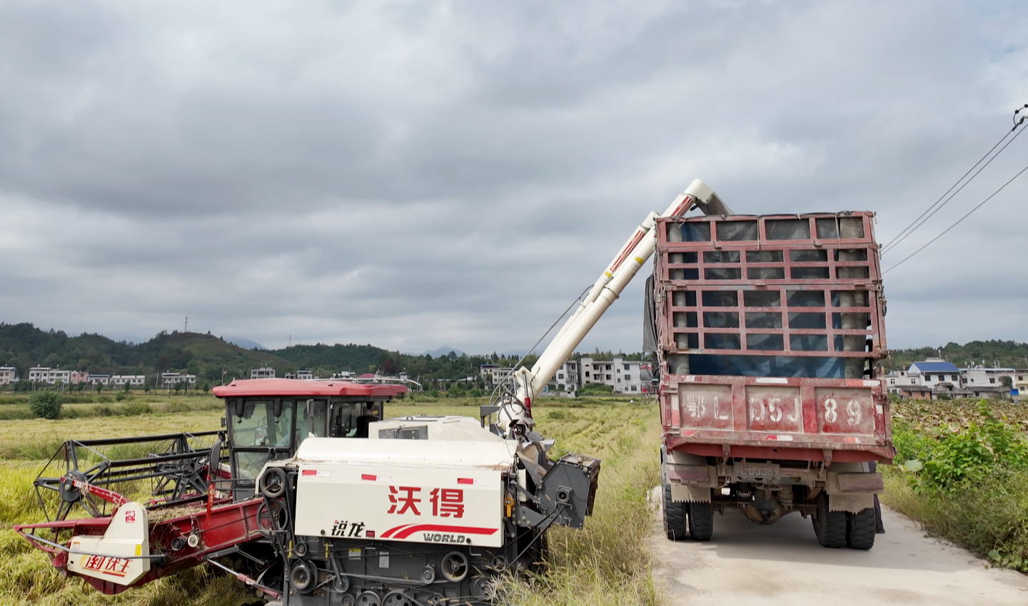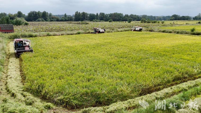 湖北日报客户端讯(通讯员胡昊宇、石盾、洪玲)喜看稻菽千重浪,遍地禾浪庆丰收。眼下,崇阳县中稻已进入集中收割期,田间地头收割机轰鸣作响,农户们忙着抢收、装运,金色稻田与忙碌身影交织成一幅动人的丰收画卷。