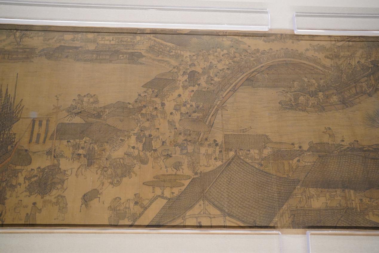 长卷刻画了北宋都城东京(今河南开封)汴河沿岸的生活景象。因为人物活动的时间是在清明前后,所以称之为《清明上河图》。画家以精细高超的用笔,将八百多各色人物,以及数以百计的树木、房屋、车船,布置在繁华熙攘的汴河两岸,兼具重要的历史文献和艺术价值。
