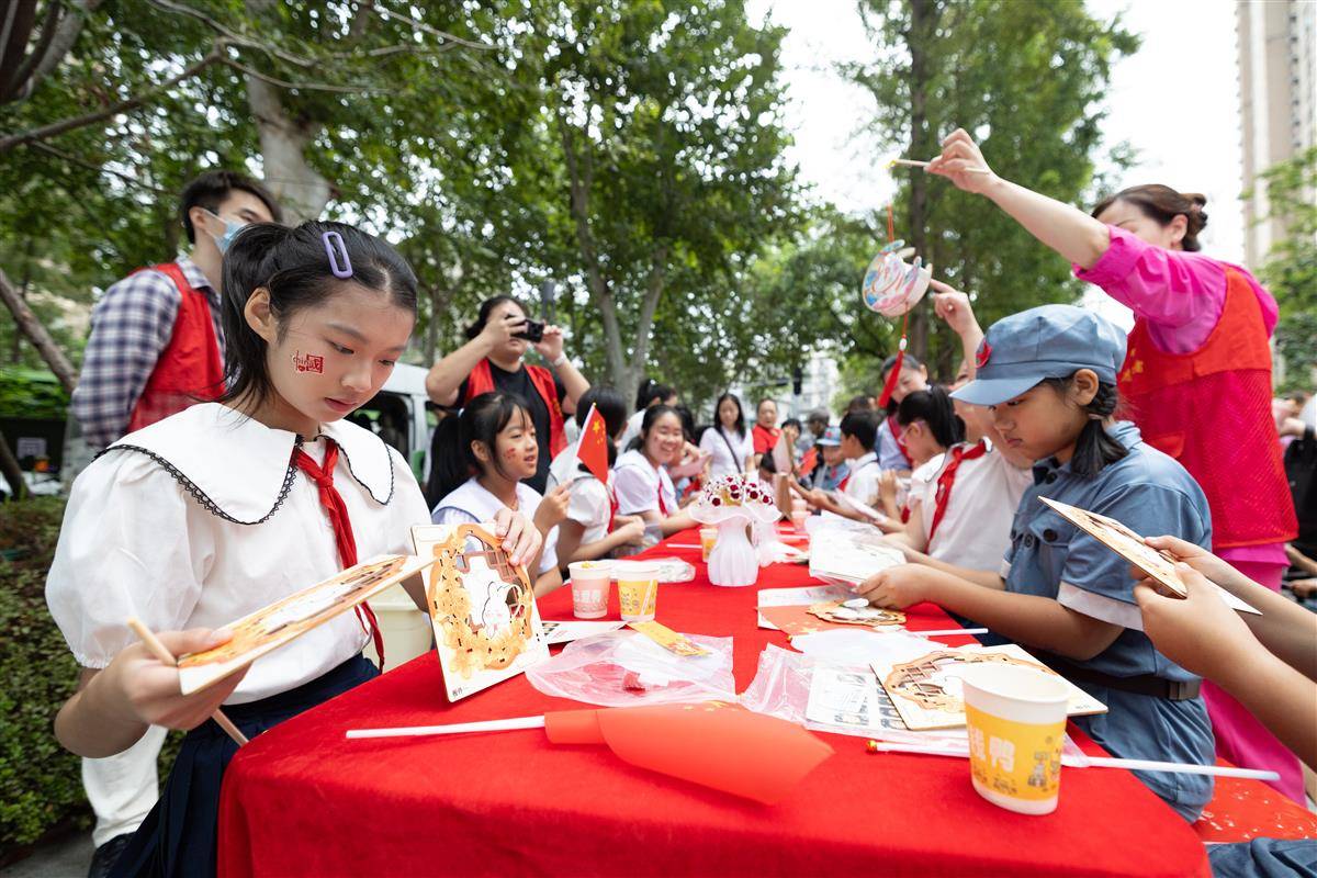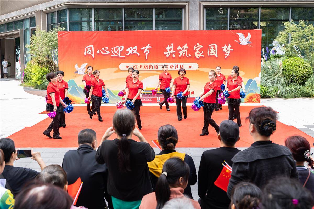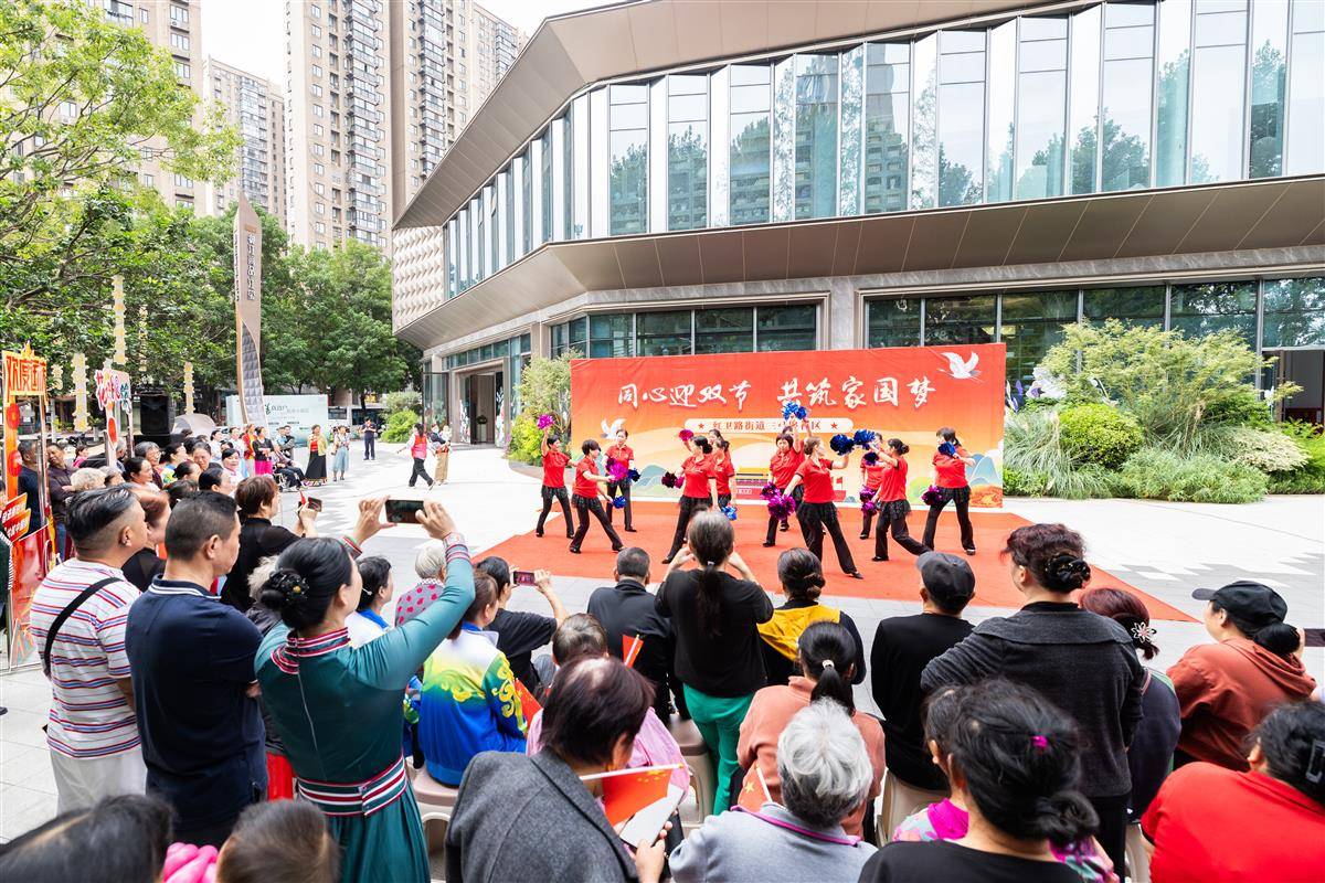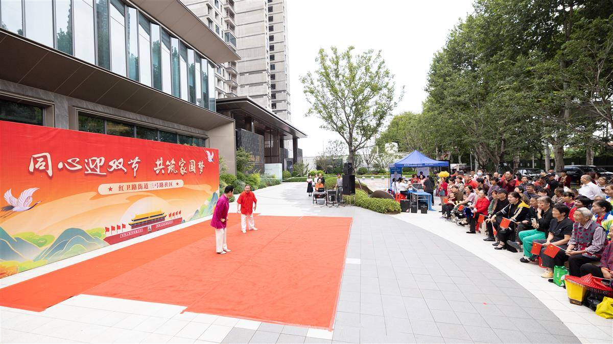 2025年9月29日上午,武汉市青山区红卫路街道三弓路社区在江玺门前广场举办了一场别开生面的国庆中秋双节同庆活动。由社区居民自发组织的舞蹈《唱支山歌爱中华》、舞蹈《茉莉花》、走秀斗笠表演《云朵上的羌寨》等各类文化表演节目精彩纷呈,吸引大批市民前来围观。来自青山区滨江未来实验小学的学生们脸上贴着国旗贴纸,手持国旗和社区居民们一道,在欢声笑语中迎接国庆节和中秋节的到来。(湖北日报全媒记者 何宇欣 通讯员 张茜 实习生 陶晨曦 摄)
