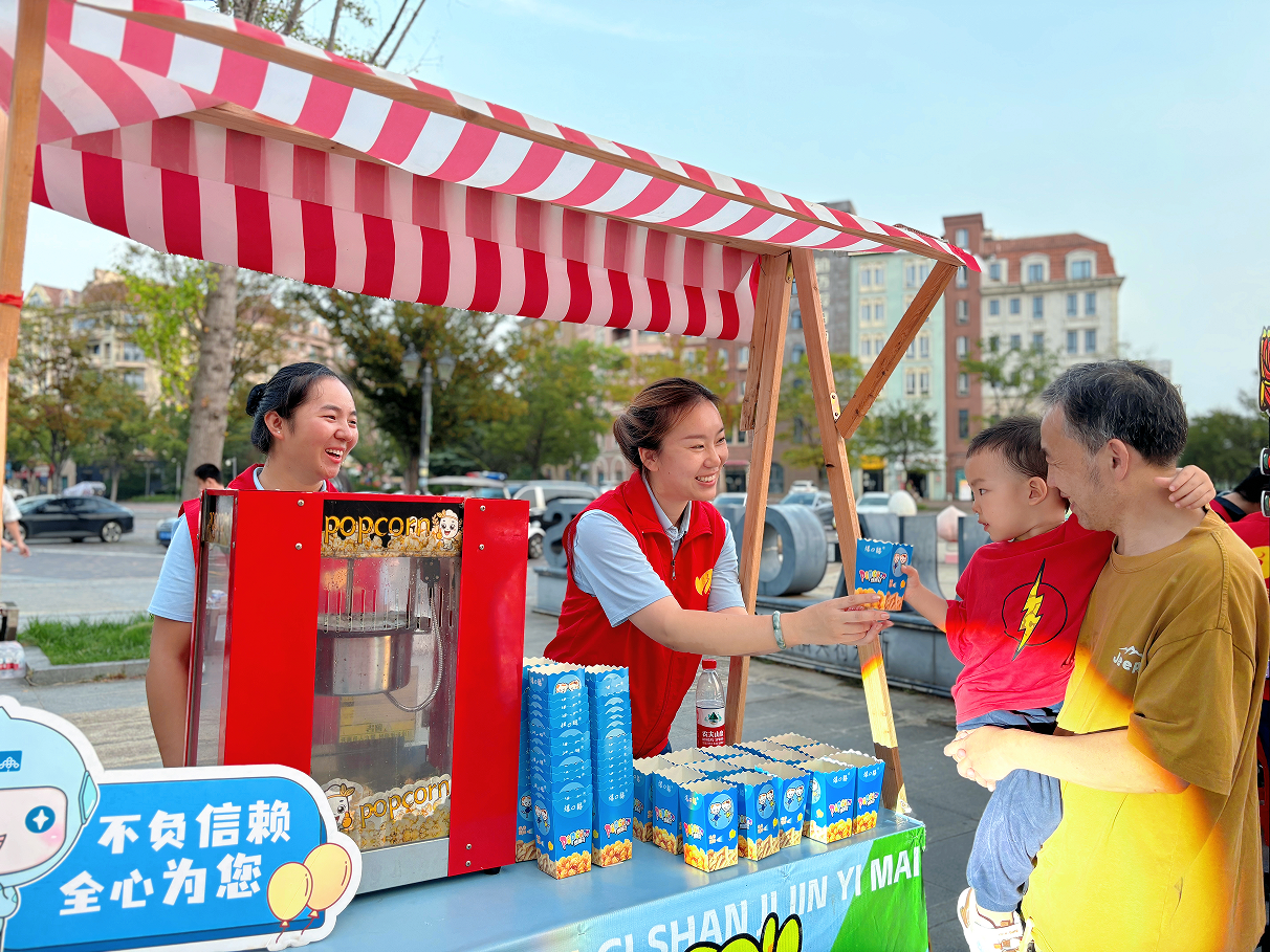 活动前,碧桂园港联绿地城项目党员志愿服务队在晚会现场搭起服务点,免费发放爆米花。现场还设置了“月饼DIY”体验和猜灯谜互动环节,居民尤其是小朋友踊跃参与,在动手体验中感受传统,在趣味互动中传递喜悦。